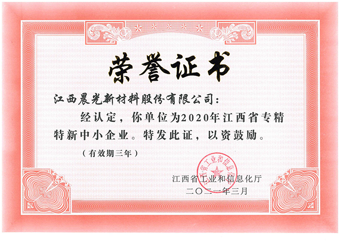 | 03 | In 2020, Jiangxi Province specialized and special new small and medium-sized enterprises - Jiangxi Provincial Department of Industry and Information Technology. |
