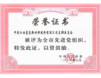 | 06 | The CPC Jiangxi Provincial Committee and Jiangxi Provincial People's Government awarded the honor of "Scientific and Technological Innovation Demonstration Enterprise". The CPC Jiujiang Municipal Committee awarded the honor of "the city's advanced Party Organization". |