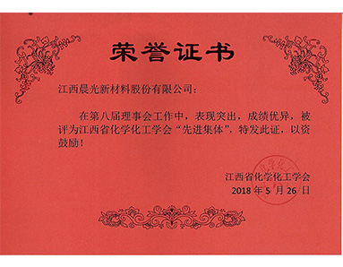 | 05 | Jiangxi Chemical Engineering Society awarded the honor of "advanced collective". China Silico-fluorine Organic Materials Industry Association awarded the honor of "China silico-fluorine industry excellent Enterprise". Hukou County Federation of Trade Unions and Hukou County Sports Bureau jointly awarded the honor of "Excellent Organization Award of the 6th Hukou County Employee Fitness Sports Games in 2018". |