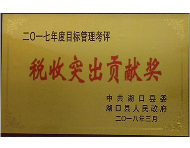 | 03 | The CPC Hukou County Party Committee and the People's Government of Hukou County jointly awarded the honor of "2017 Outstanding Contribution Award for Target Management Evaluation and Tax Revenue". |