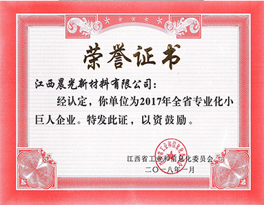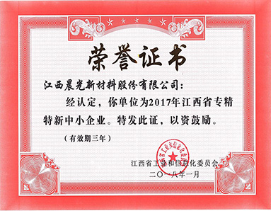| 01 | Jiangxi Provincial Industry and Information Technology Commission awarded the honor of "2017 Jiangxi Province Specialized and special new Small and medium-sized Enterprises". Jiangxi Provincial Industry and Information Technology Commission awarded the honor of "2017 Jiangxi Provincial Professional Small Giant Enterprise". |