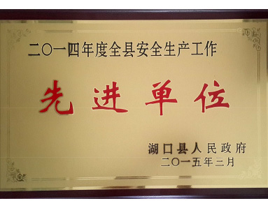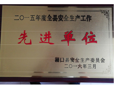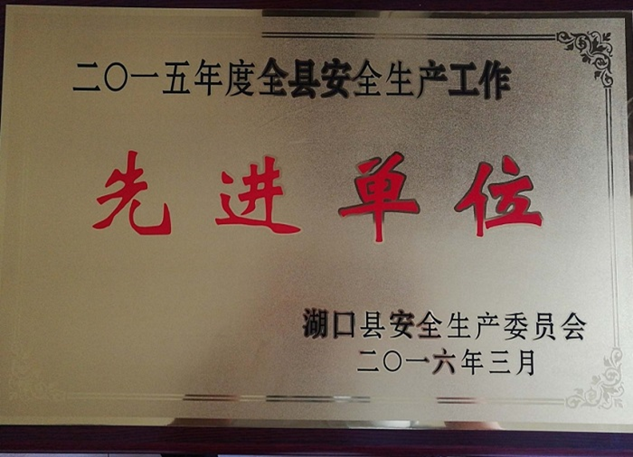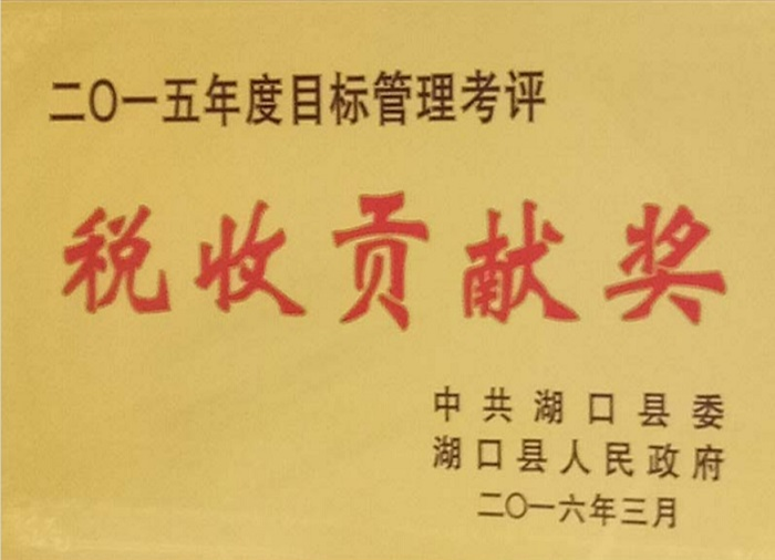 | 03 | Hukou County Party Committee and Hukou County People's Government jointly awarded the honor of "2015 Annual Target Management Evaluation Tax Contribution Award". Hukou County Safety production Committee awarded the honor of "2015 County Advanced unit of safety production work". |