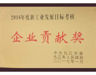 | 01 | Jiujiang Municipal Committee of the Communist Party of China and Jiujiang Municipal People's Government jointly awarded the "2016 New Industrial Development Goal Assessment Enterprise Contribution Award" honor. |