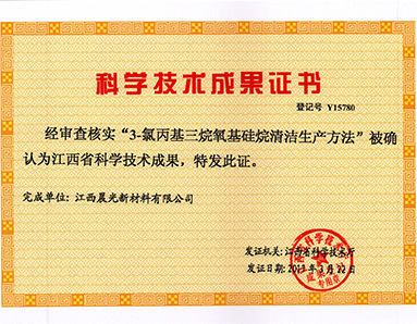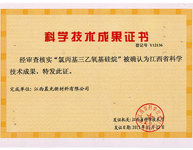 | 06 | The development and application of new technology of chloropropyl triethoxy-silane alcoholysis won the Jiangxi Provincial Science and Technology Invention Award. |