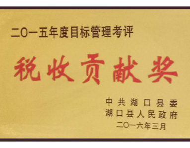 | 02 | The CPC Hukou County Party Committee and Hukou County People's Government jointly awarded the honor of "2016 Outstanding Contribution Award for Target Management Evaluation and tax Revenue". |
