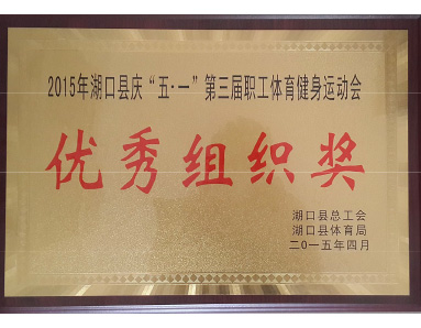 | 04 | Hukou County Federation of Trade Unions and Hukou County Sports Bureau jointly awarded the honor of "2015 Hukou County Qing May 1st 3rd Staff Sports Fitness Games Excellent Organization Award". |