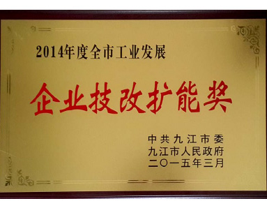 | 03 | Jiujiang Municipal Committee of the Communist Party of China and Jiujiang Municipal People's Government jointly awarded the "2014 Municipal Industrial Development Enterprise Technical Transformation and Expansion Award". Hukou County People's Government awarded the honor of "2014 Advanced unit of safety production work in the county". |