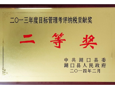| 02 | Hukou County Party Committee and Hukou County People's Government jointly awarded the Second Prize of "2013 Target Management Evaluation Tax Contribution Award". |