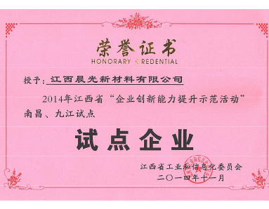 | 11 | Jiangxi Provincial Industry and Information Technology Commission awarded the honor of "Pilot enterprise of demonstration activity of innovation ability Enhancement". |