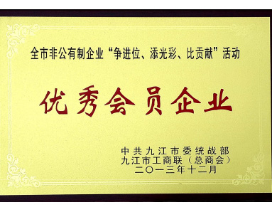 | 12 | First approved advanced high-tech enterprises. The United Front Work Department of the CPC Jiujiang Municipal Committee and the Jiujiang Federation of Industry and Commerce (General Chamber of Commerce) jointly awarded the honor of "Excellent member Enterprise". |
