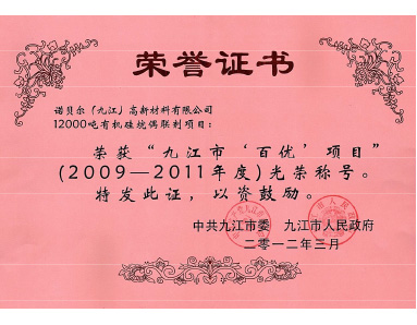 | 03 | Jiujiang Municipal Committee of the Communist Party of China and Jiujiang Municipal People's Government jointly awarded the honor of "2009-2011 Jiujiang Hundred Excellent Project". |